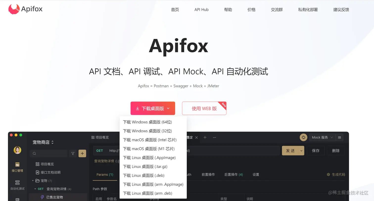 官网上可直接下载的版本是saas 版,在功能上saas 版本和私有化版本完全一致,只是私有化部署是将 项目的服务器部署在公司内的服务器上,而saas 版本是托管在公有云上的。 对于缺乏预算的个人开发者和小团队,可以直接使用saas 版本,如果想要安装私有化部署购买费用和安装部署相关的事情,可以去Apifox 官网私有化部署 tab 相关工作人员的信息咨询。