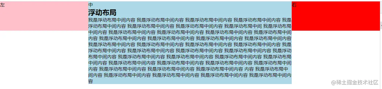 这种布局方式,dom 结构必须是先写浮动部分,然后再中间块,否则右浮动块会掉到下一行。