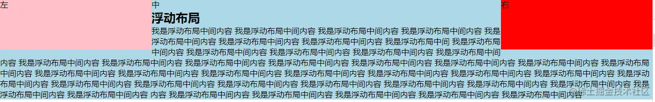 在前面也说了,浮动实现的三栏布局会使元素脱离文档流,所以为了不影响其他元素的显示需要清除浮动: