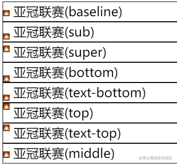 (+-n)px元素相对于基线上下偏移npx - vertical-align: