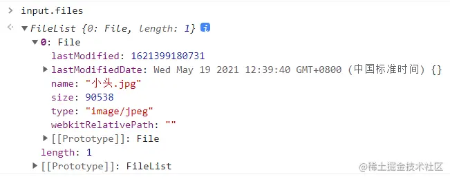 由上结果可知在 input 元素选择文件后返回了一个 FileList 对象: