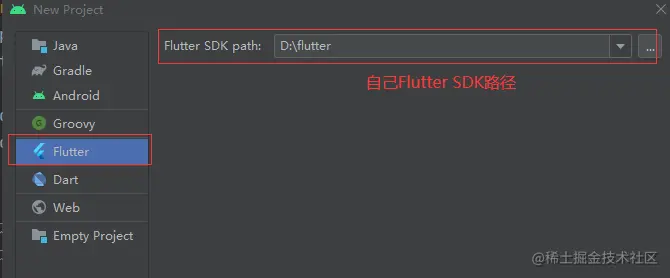 注意:这里如果没有Flutter选项,请安装Flutter插件,小白已在Flutter入门教程(二)开发环境搭建中讲解