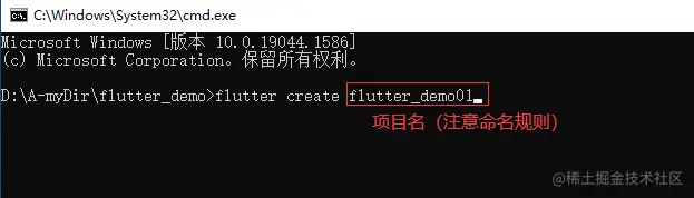 使用 flutter create <projectname> 命令创建flutter项目: