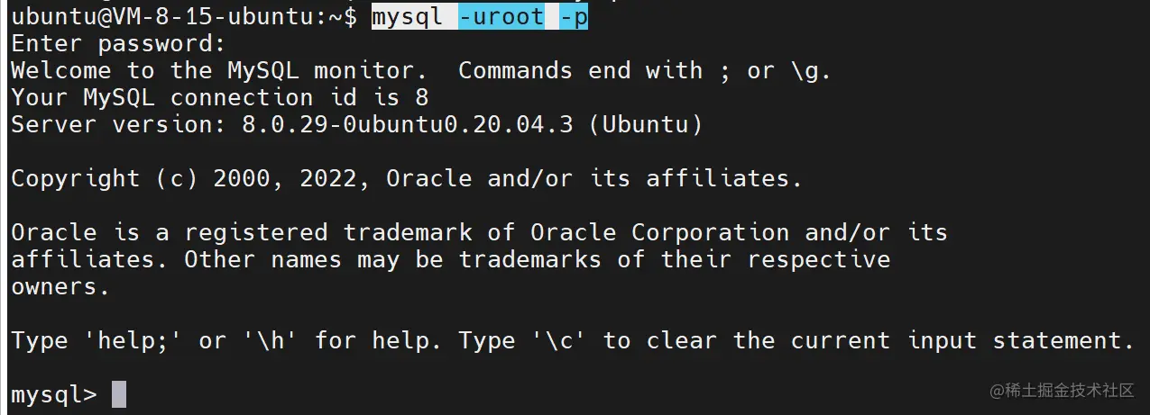 mysql -uroot -p