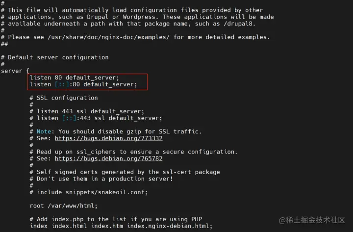 配置文件路径:/etc/nginx/sites-enabled/default