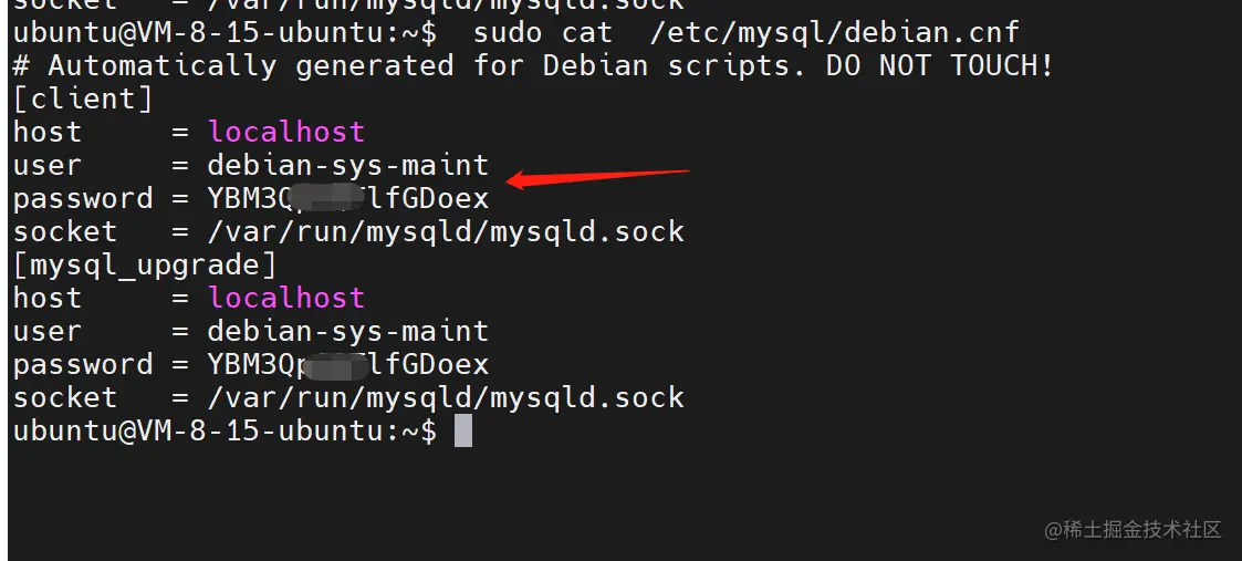 sudo cat /etc/mysql/debian.cnf