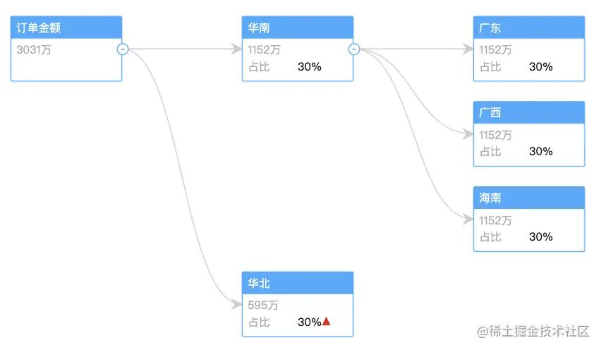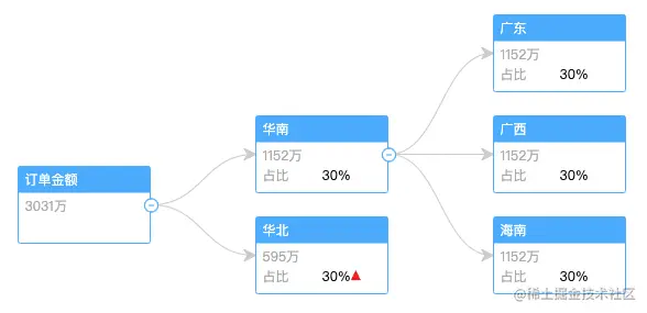 一次展示所有节点不切实际,正常情况下都会异步加载,我们看下 DecompositionTreeGraph 是如何实现的,点击 + 号即可看到效果。