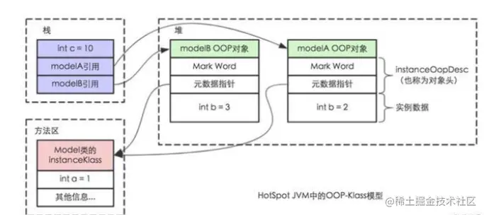 1、jvm将对象所在的class文件加载到方法区中