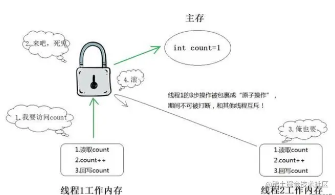 这里不谈原子性,内部屏障等问题,加锁是可以解决的,加锁的核心是保持互斥,保持线程安全。互斥,即为多线程之间,只有一个线程能能操作大家所需的资源。