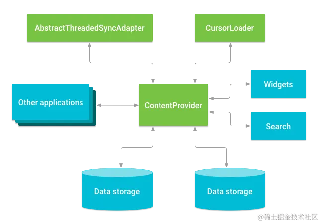ContentProvider 管理其自身和其他应用所存储数据的访问,并提供与其他应用共享数据的方法。