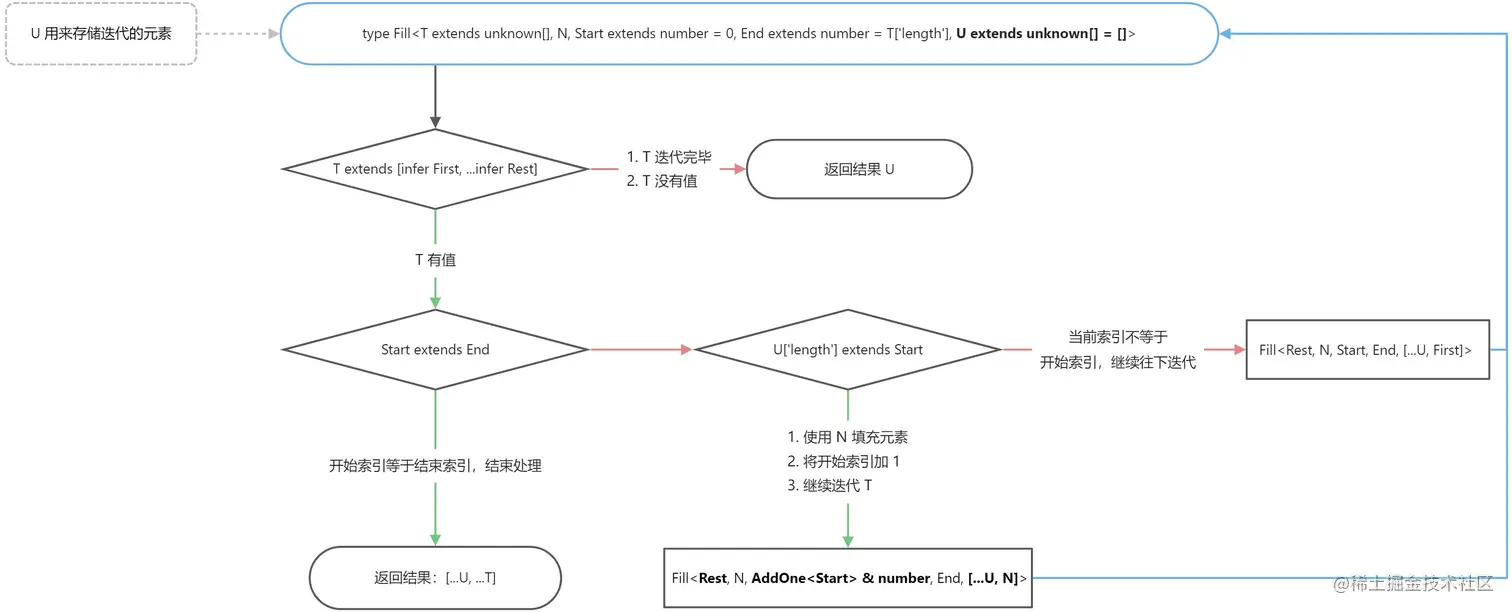 - 其中占位类型 U 是用来存储迭代中处理的元素,
