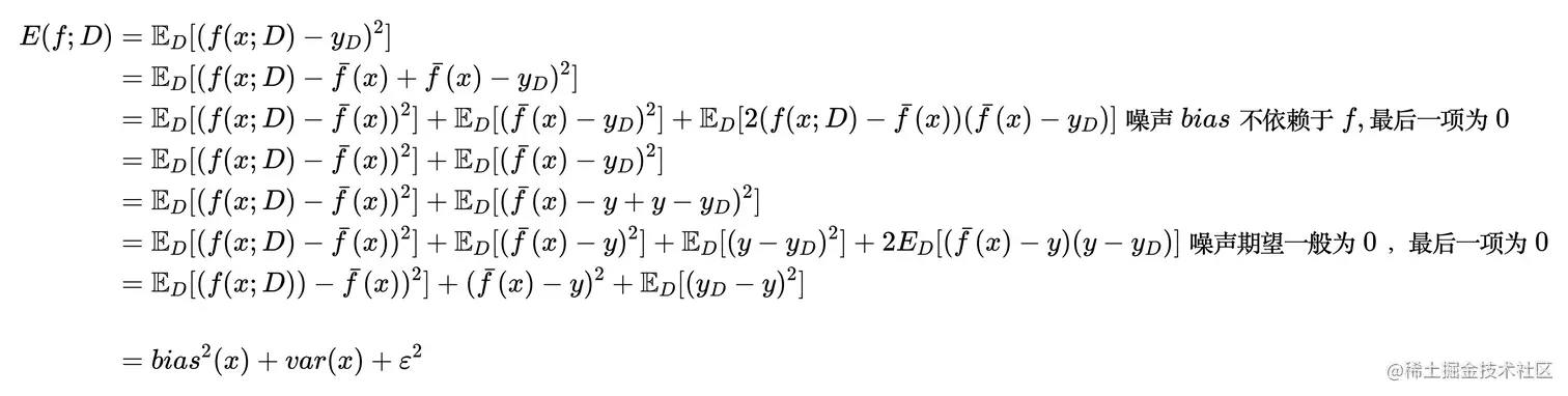 有期望预测 ,在样本数相同的不同数据集上的方差为 ,噪声为 ,期望输出和真实标记的差别为偏差 (bias)