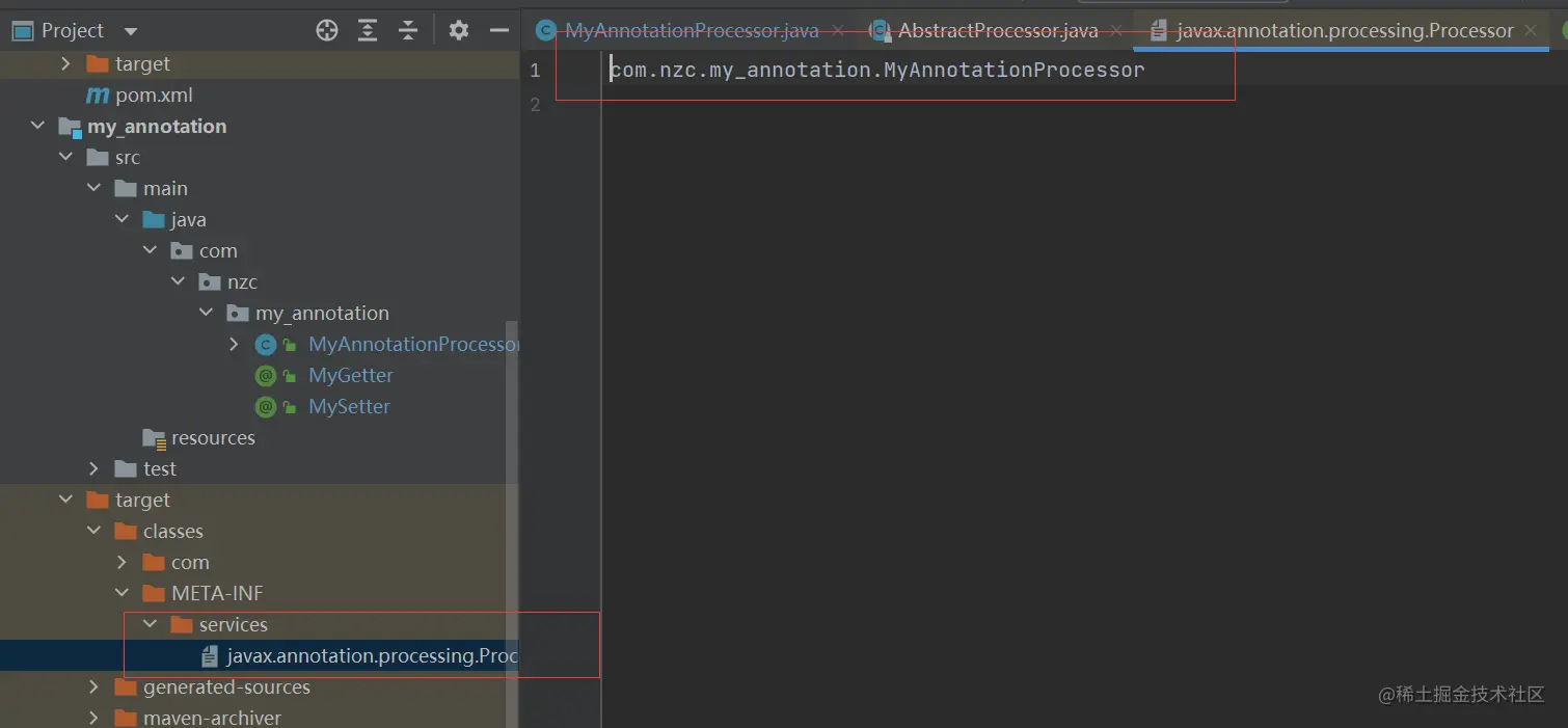 要实现注解处理器首先要做的就是继承抽象类 javax.annotation.processing.AbstractProcessor,然后重写它的 process() 方法,process() 方法是 javac 编译器在执行注解处理器代码时要执行的过程。
