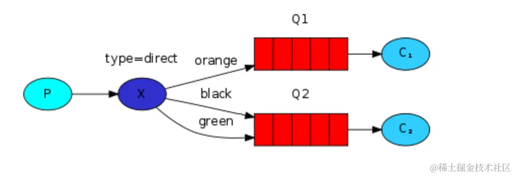 直连交换机被应用在路由模式下,该交换机需要通过特定的routingKey来绑定队列,交换机只有接收到了匹配的routingKey才会将消息转发到对应的队列中,否则就不会转发消息。