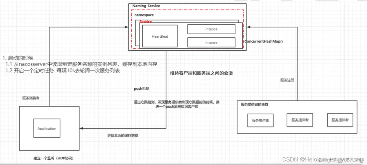 服务端在发生心跳检测、服务列表变更或者健康状态改变时会触发推送事件,在推送事件中会基于UDP通信将服务列表推送到客户端,虽然通过UDP通信不能保证消息的可靠抵达,但是由于Nacos客户端会开启定时任务,每隔一段时间更新客户端缓存的服务列表,通过定时轮询更新服务列表做兜底,所以不用担心数据不会更新的情况,这样既保证了实时性,又保证了数据更新的可靠性。