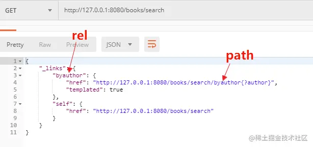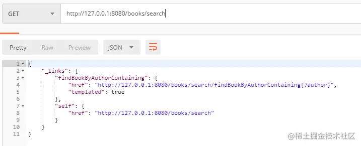 这样定义完成后,表示接口名为 byauthor ,重启项目,继续查询接口: