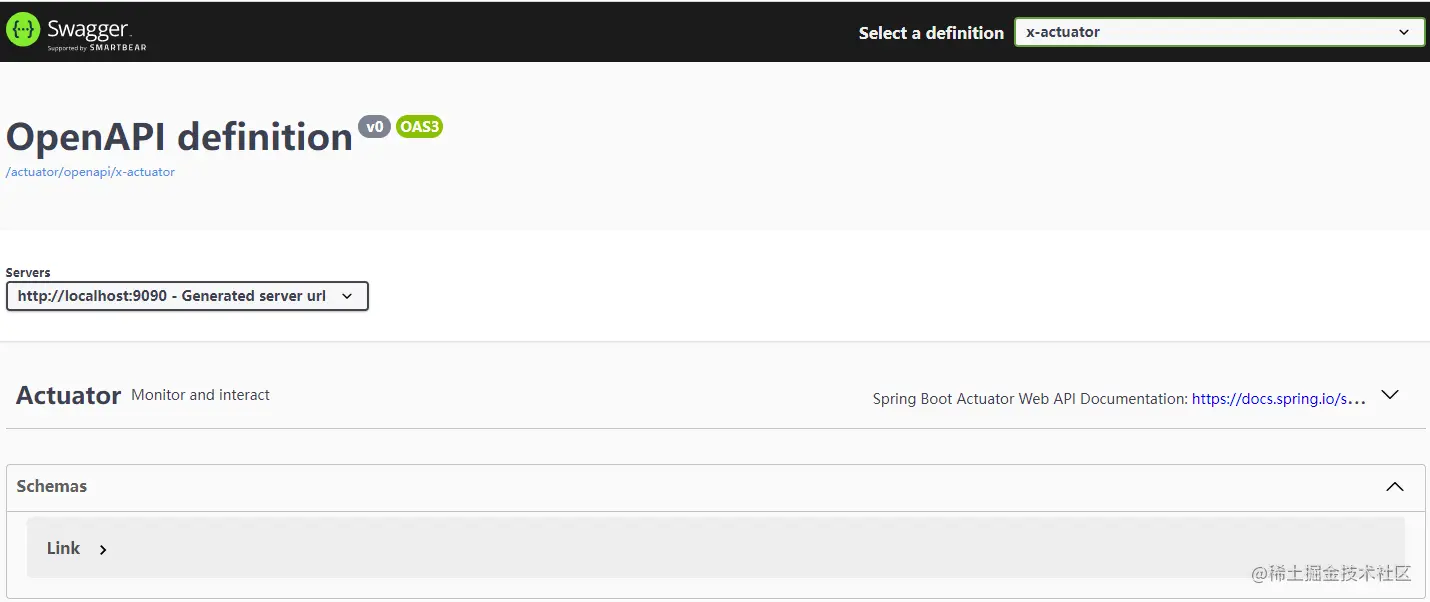 至于 SpringDoc 会显示多少个 Actuator 端点出来,那就要看 Actuator 暴露出来多少端点了,最终显示效果如下: