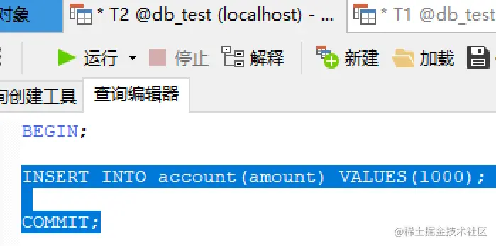 然后,T2插入一条amount=1000的记录并提交,只执行选择部分