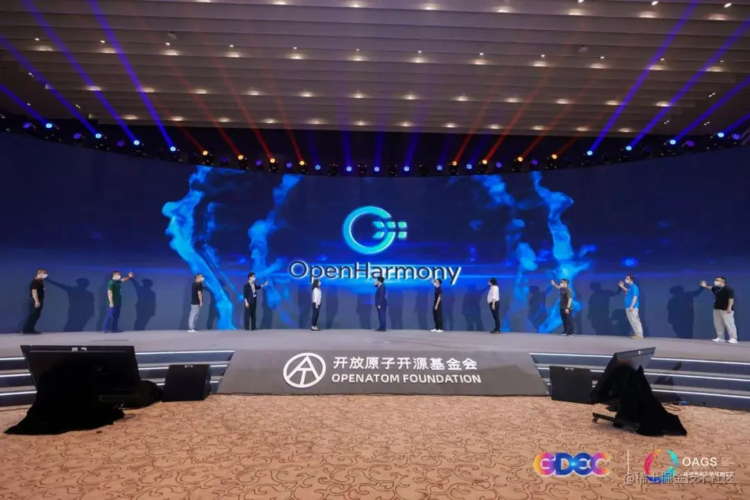 与此同时,本次分论坛上发布了OpenHarmony的logo。logo为一个封闭的圆环打开,寓意OpenHarmony是开源开放的全新操作系统,小圆代表核心共建单位和开发者,大圆代表更多共建单位和开发者,他们都在一个同心圆里,寓意他们团结在OpenHarmony周围,携手共同繁荣OpenHarmony生态。