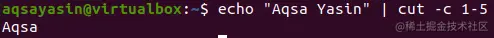 Cut似乎是一个命令行工具,用于从这样的短语或文件中提取一段文本,并将其打印到标准输出。这个操作也可以用来从某种字符串中删除字母。我们将使用一个短语的例子,并将其传递给剪切指令进行测试。因此,我们使用了 "Aqsa Yasin "短语并将其传递给 "cut "查询。在标志-c之后,我们已经定义了一个字符串的索引范围,以便从提到的字符串中切割字符。它将显示从索引1到索引5的字符。索引5在这里被排除。输出显示前4个字符为 "Aqsa"。