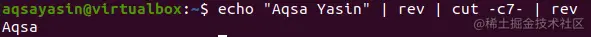 这一次我们将以不同的方式使用剪切指令。我们使用了 "rev "函数来反转字符串。在对字符串进行反转后,我们将对字符串的第一个字符进行切割。标志"-c2-"意味着我们的子串将是向上的字符2。之后,再次使用反转函数来反转字符串。所以,这一次我们得到的是去除最后一个字符后的原始字符串。