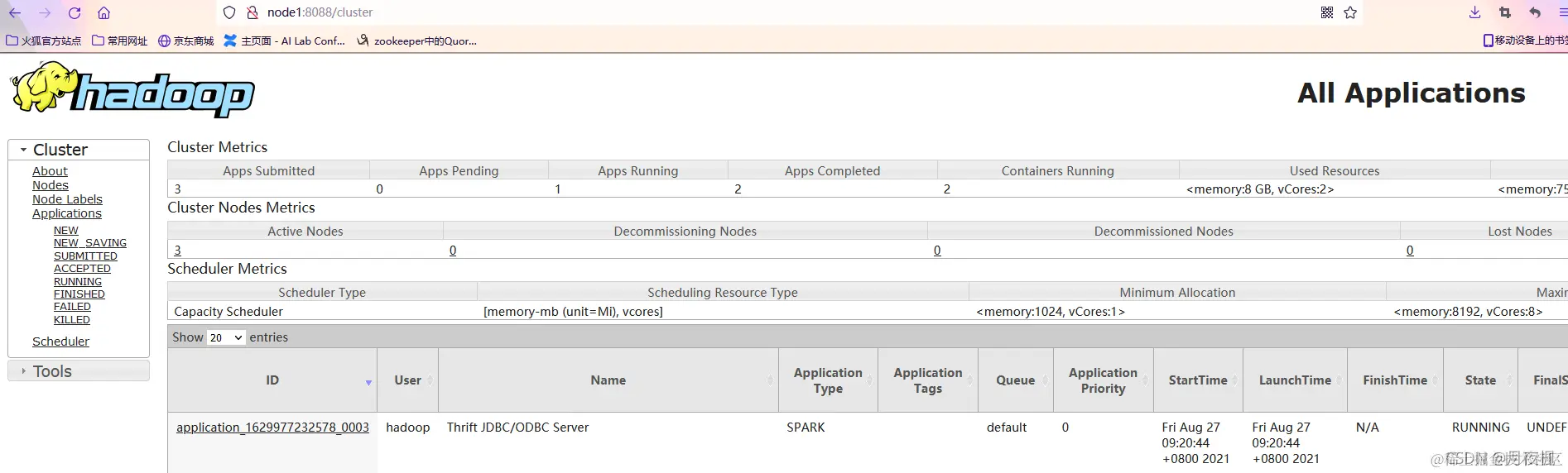 application_1629977232578_0003 Thrift JDBC/ODBC Server SPARK hadoop default RUNNING UNDEFINED 10% http://node4:4040