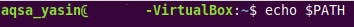 现在,当新的bashrc文件被加载到你的系统中时,你可以重新检查你的系统的当前路径,以确保你的新路径被附加到系统的默认路径中。你可以通过在终端显示PATH变量的值来重新检查你系统的新路径。你可以从下图显示的这个命令的结果中看到,指定的新路径已经被追加到Ubuntu 20.04系统的默认路径中。