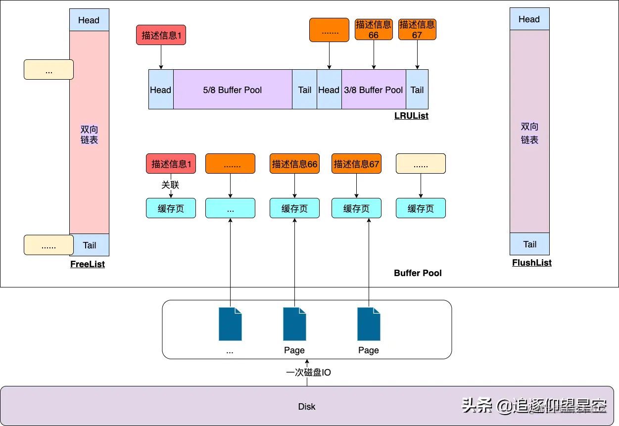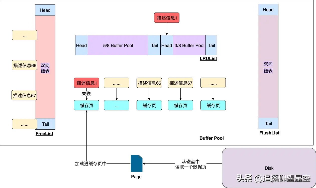 因为发生了预读,所以你的一次磁盘IO读出了大量的数据页,但是这些数据页中很可能是有一些是你根本不需要的,仅仅是预读把它们级联查出来了。这时按老规矩,从FreeList中找到空闲的缓存页信息,然后将其从FreeList中移除。根据找到的空闲缓存页的描述信息,将从磁盘中读取出来的数据页加载进去。相应的该缓存页的描述信息也会被维护进LRU链表的冷数据区域。