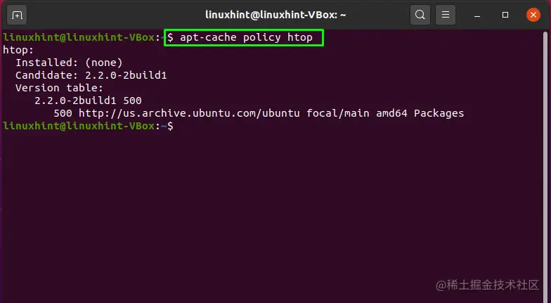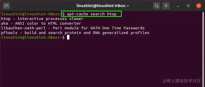 现在,我们将执行 "apt-cache"命令来搜索 "htop"软件包。