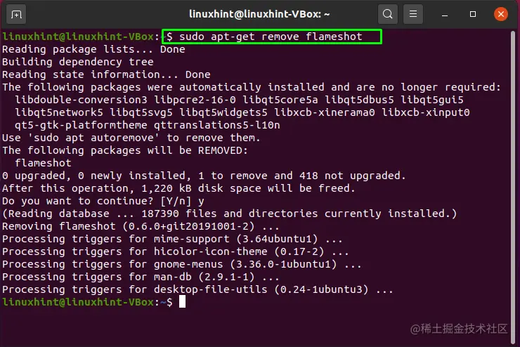 例如,我们将利用下面的命令删除已安装的 "flameshot "软件包。