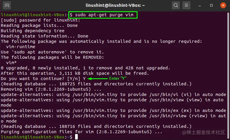 $ sudo apt-get purge vim