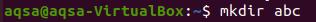 第一步是创建一个目录。我们以 "abc "作为目录名称的样本。通过执行以下命令创建一个目录。