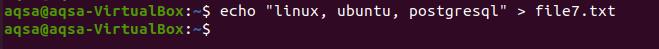 $ echo “Linux, ubuntu, Postgresql” > file7.txt