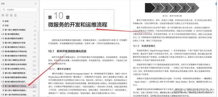 第10章,微服务的开发和运维流程。围绕着DevOps 来描述基于微服务架构下的开发和运维流程的变化和支撑。