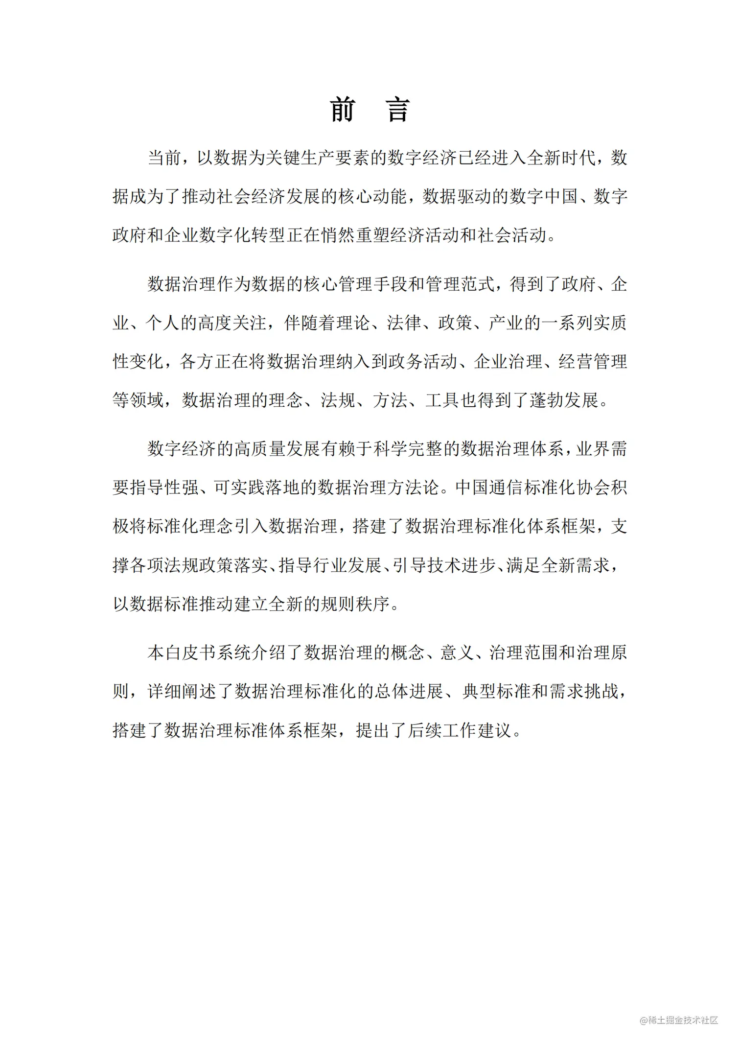 本白皮书系统介绍了数据治理的概念、意义、治理范围和治理原则,详细阐述了数据治理标准化的总体进展、典型标准和需求挑战,搭建了数据治理标准体系框架,提出了后续工作建议。