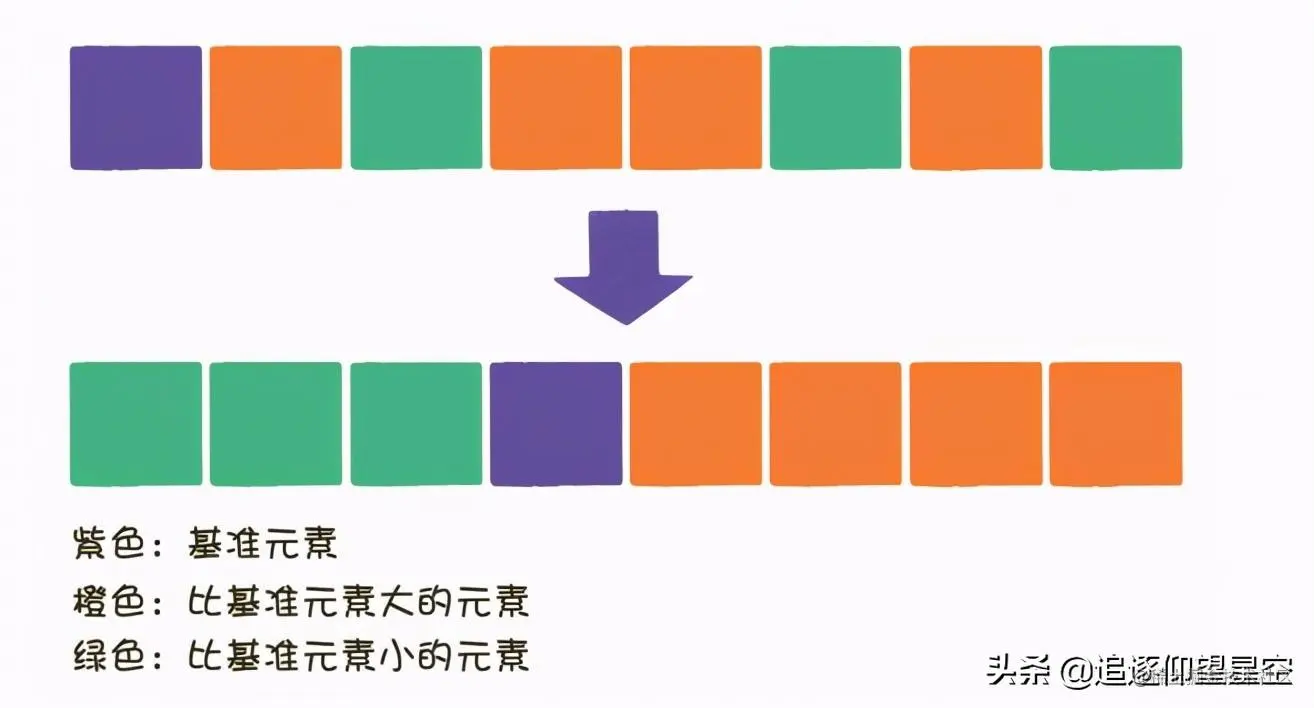 同冒泡排序一样 ,快速排序也属于交换排序,通过元素之间的比较和交换位置来达到排序的目的。