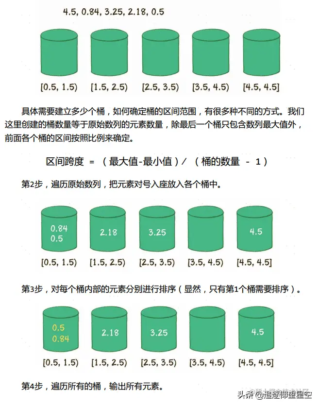 桶排序的第1步,就是创建这些桶,并确定每一个桶的区间范围。