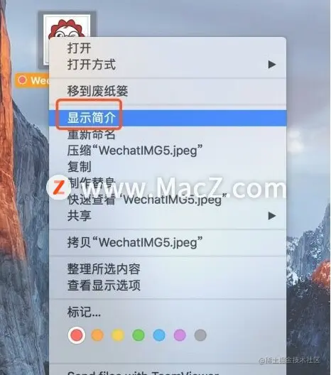 1、找到有权限问题的文件,右键点击选择“查看显示简介”;
