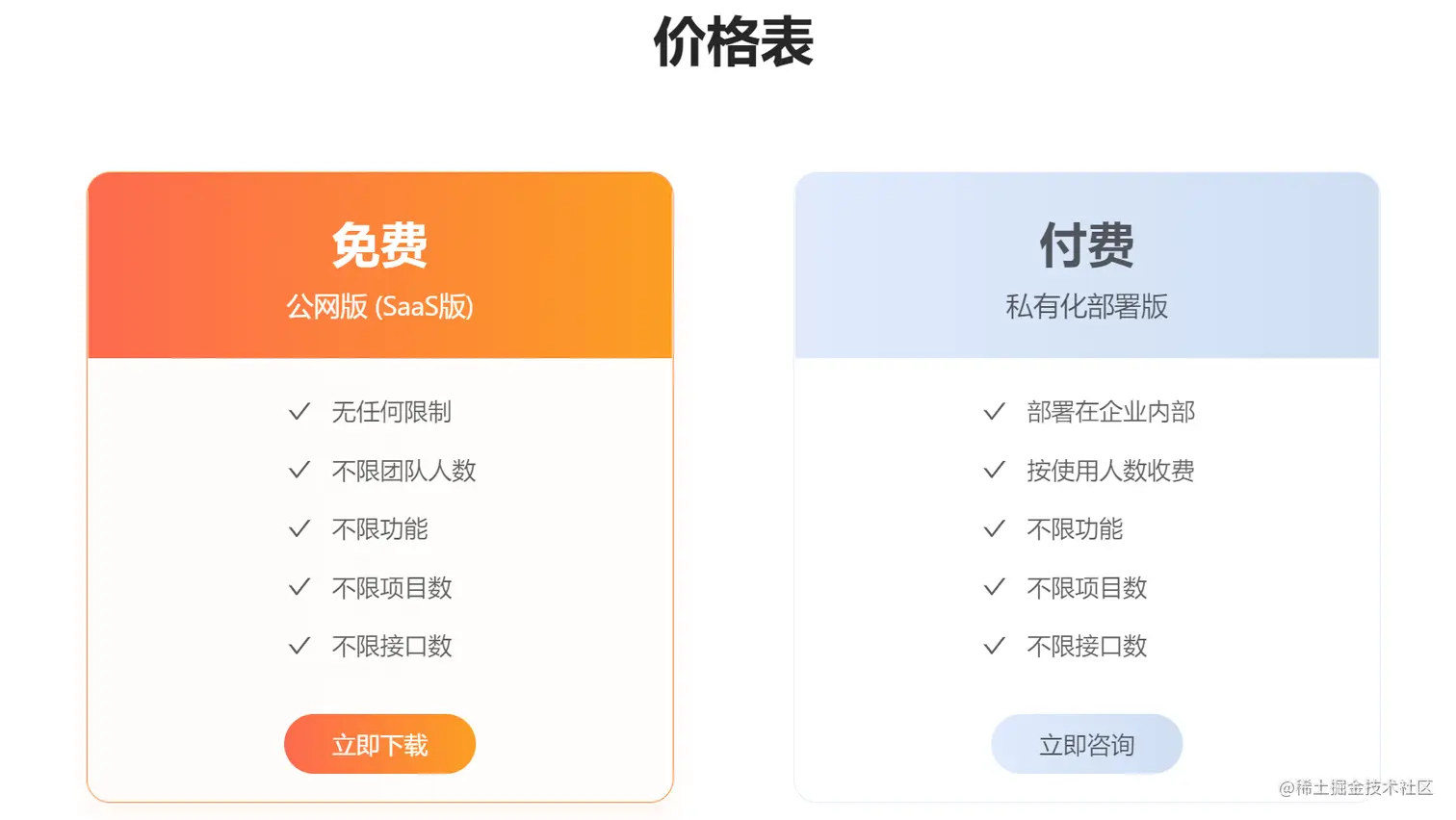 让我们先了解什么是私有化部署,官网上可直接下载的版本是saas版,saas版是完全免费的,在功能上saas 版本和私有化版本完全一致,只是私有化部署是将 项目的服务器部署在公司内的服务器上,而saas 版本是托管在公有云上的。