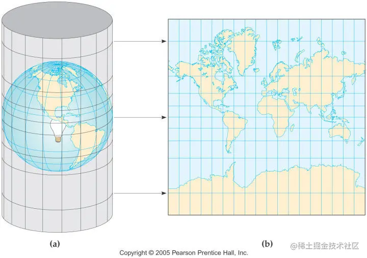 墨卡托投影是正轴等角圆柱投影。