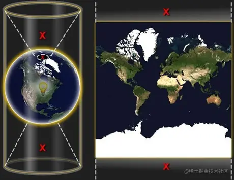 Google基于墨卡托投影设计了 Web墨卡托投影 (Web Mercator)。
