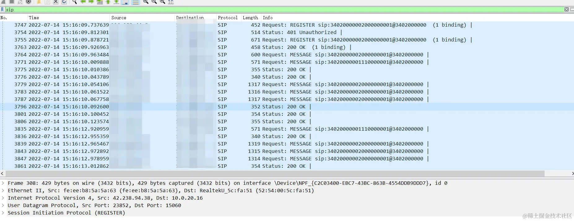 技术人员进行抓包测试,发现设备一直发送注册消息返回401,密码鉴权就无法上线,于是修改注册编码,重新注册后即可正常上线。