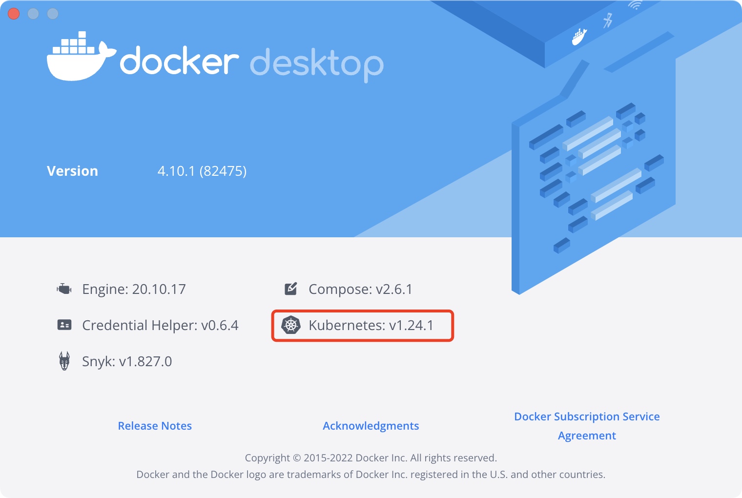Docker for Desktopv4.10.1Kubernetesv1.24.0