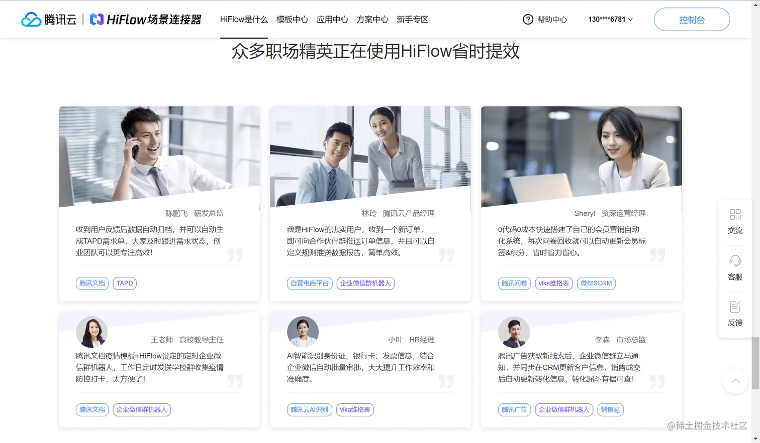 目前腾讯云HiFlow场景连接器已经支持200+应用,能够满足市场销售、财务、行政HR、产品研发、办公协同等多类连接场景。