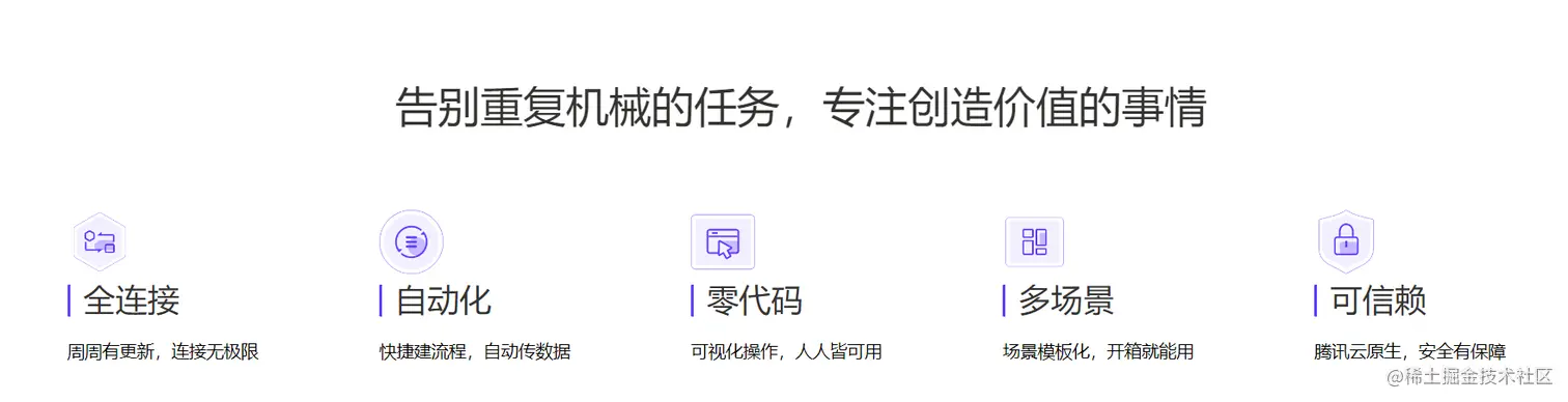 腾讯云HiFlow场景连接器,办公必备的自动化流程小助理!可以把繁复重复的日常工作变成全自动的流程,不用写代码,随时可修改、可管理。