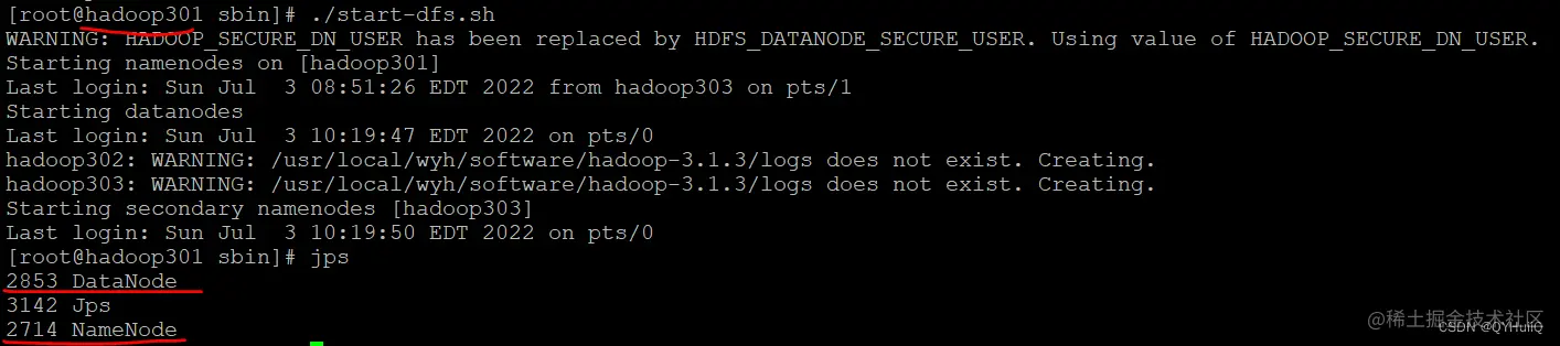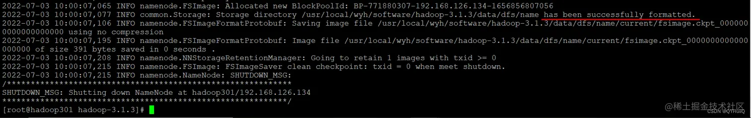 [root@hadoop301 hadoop-3.1.3]# hdfs namenode -format