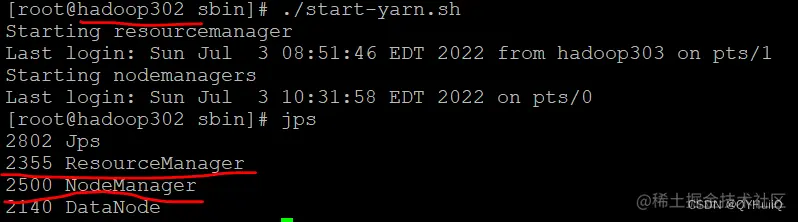 [root@hadoop302 sbin]# ./start-yarn.sh