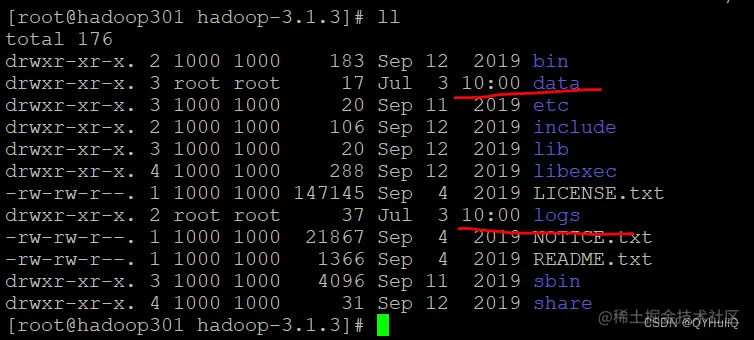 -rw-r--r--. 1 root root 338075860 Jul 1 07:09 hadoop-3.1.3.tar.gz