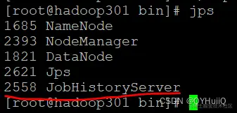 [root@hadoop301 bin]# ./mapred --daemon start historyserver