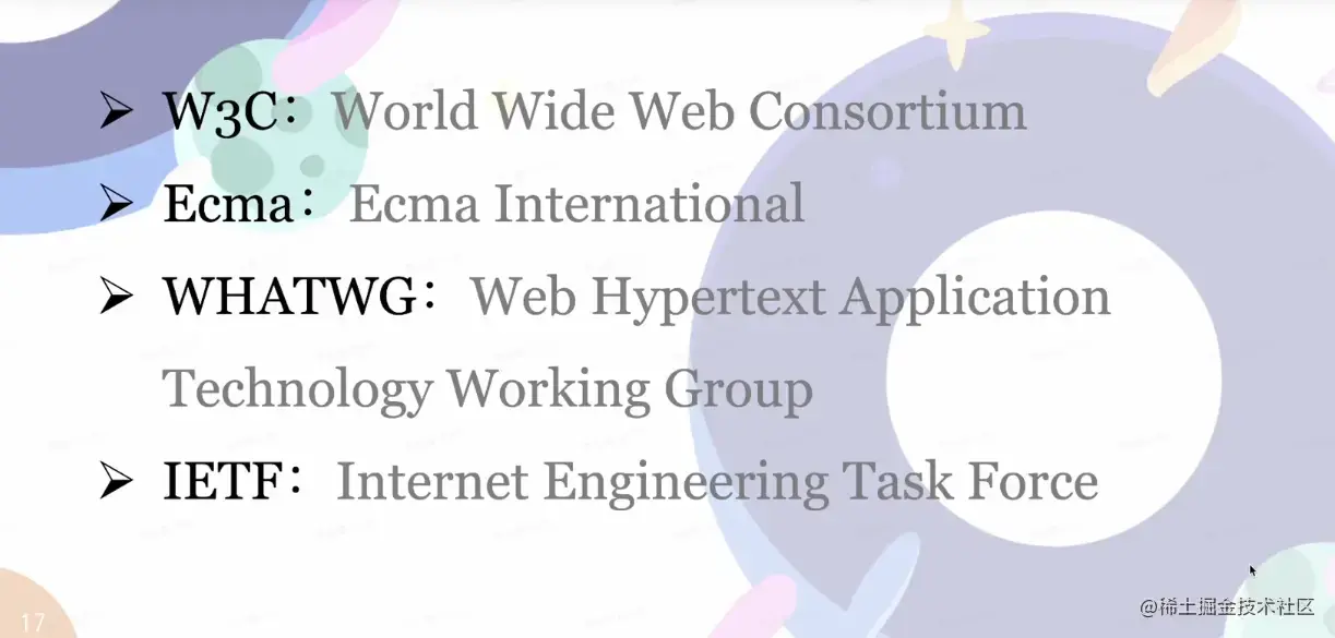 WHATWG 致力于多种技术,这些技术是 Web 平台的基本组成部分。它们是根据编辑这些技术标准的人的喜好随意组织的。